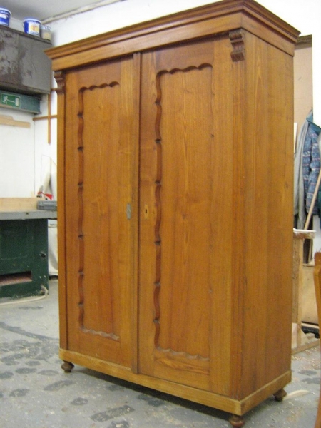 Nábytek renovace Ukázka renovace nábytku opravy nefunkčních kusů doplnění chybějících nebo nevratně poškozených částí doplnění chybějících ručně vyřezávaných detailů oprava poškozených vyřezávaných detailů obnovy povrchů malované truhly a skříně ochrana proti další destrukci nábytku